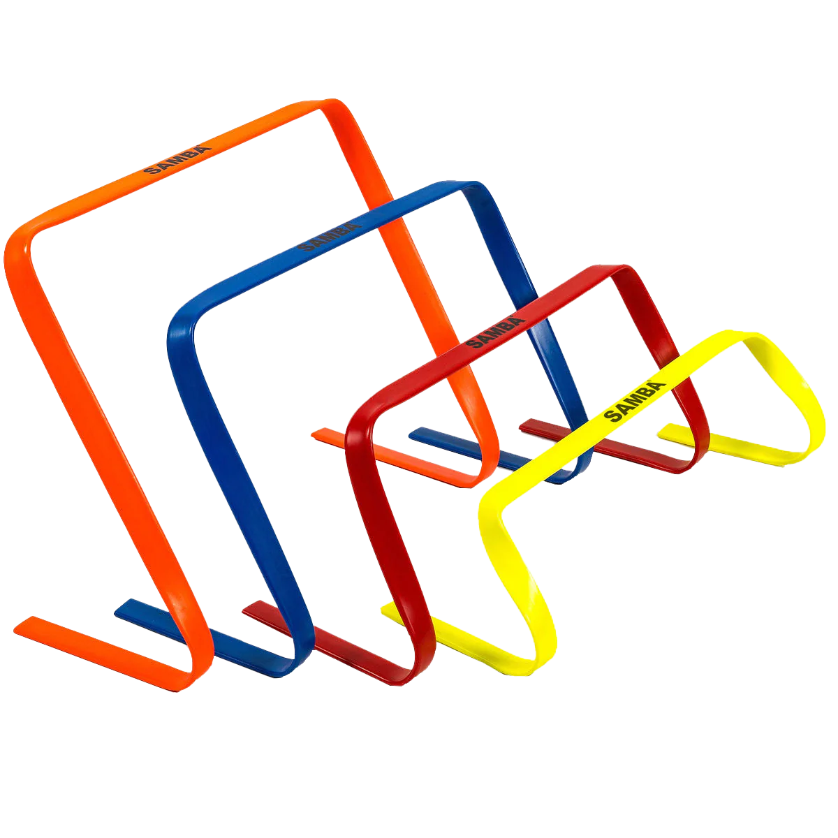 Samba Flat Profile speed and agility hurdles- pack of 6 with carry handle. Samba's flat profile hurdles are excellent quality speed and agility hurdles, made from high quality material to withstand regular use. Lightweight and suitable for hard or soft surfaces.