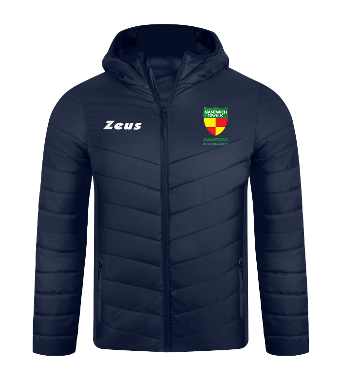 Padded winter jacket with hood. Zip closure. Side pockets with zip and side inserts.