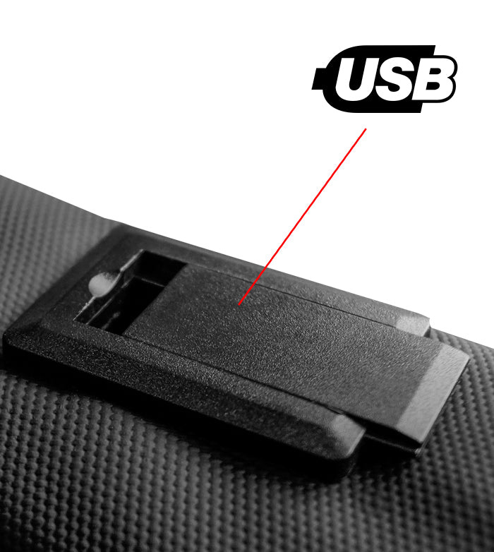 Features: The Giorgio backpack is made of UV-resistant synthetic material. It includes zippered pockets, an internal compartment for a laptop, and a mobile phone holder. Equipped with a USB connector and integrated cable.